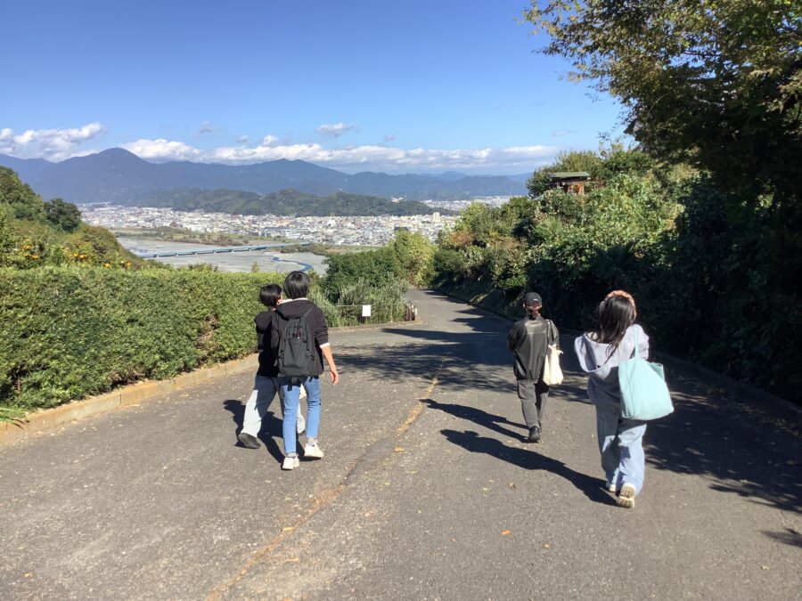 こうして、全員無事向敷地バス停に到着し、1時間に1本しかなバスを20分ほど待って帰路につきました。バス停に向かう途中「楽しかったね」とみんなに声をかけましたが、返事はなかったけれど、たぶん今夜はぐっすり眠れるし、静岡市街を見渡した風景は記憶に残ってくれたと思います。来月の月イチハイクは12月18日の予定、さて来月はどこに行きましょうか。