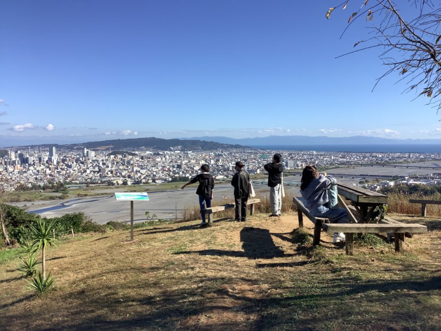 徳願寺から登って下って12時30分、花木園到着。ここからは静岡市街だけでなく、伊豆半島、駿河湾、南アルプス、竜爪山など、ぐるっとパノラマが拡がっていて、生徒たちも景色を楽しんでいました。