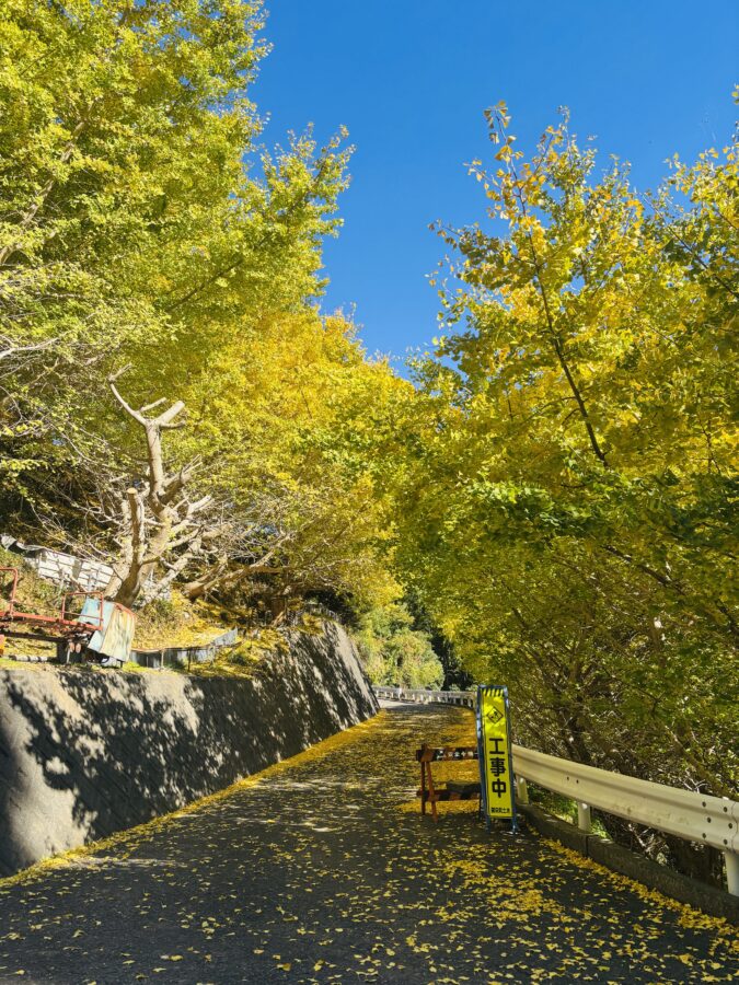 途中、道路の両側が黄色く染まっているみごとな紅葉を見ることができました。